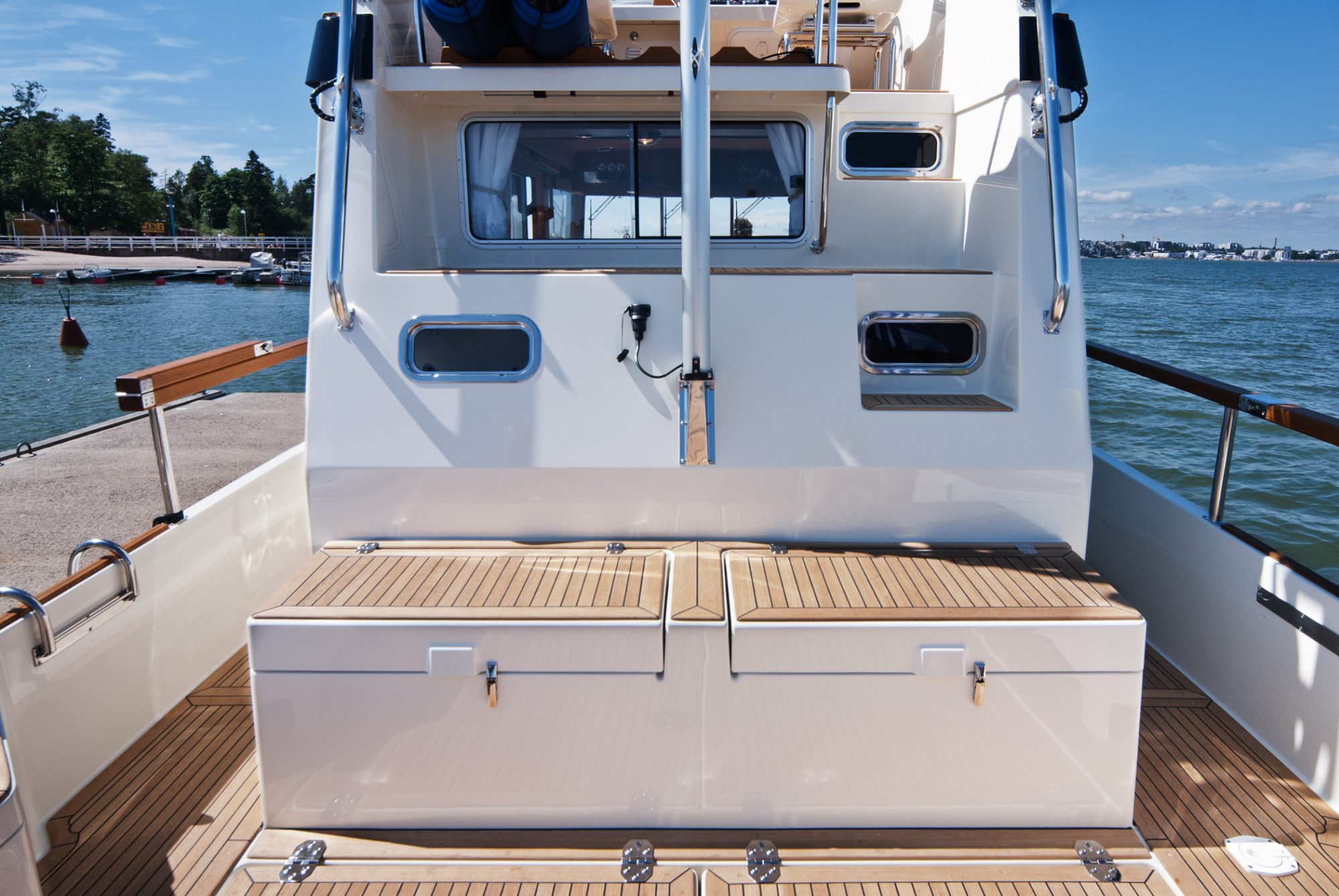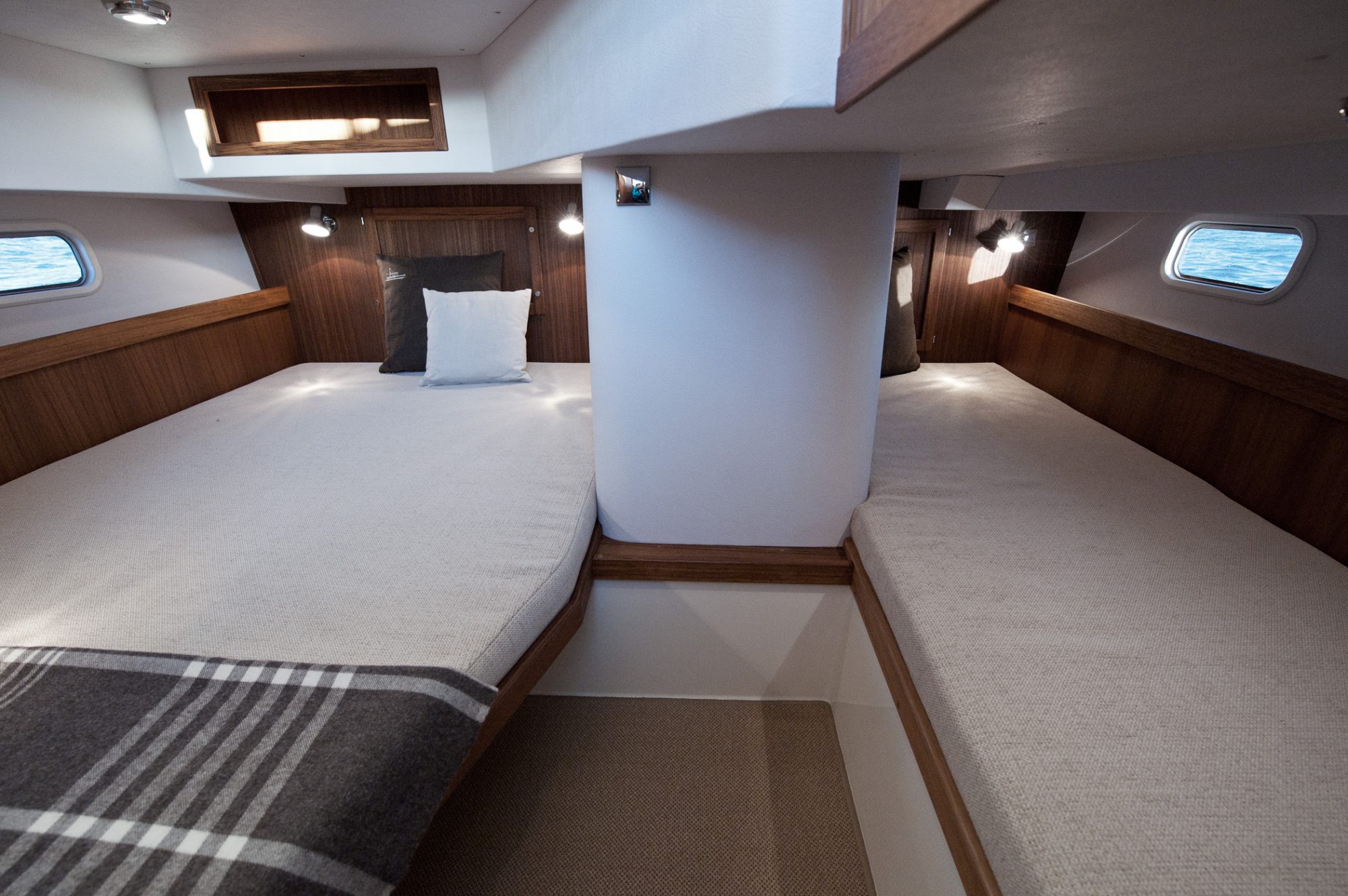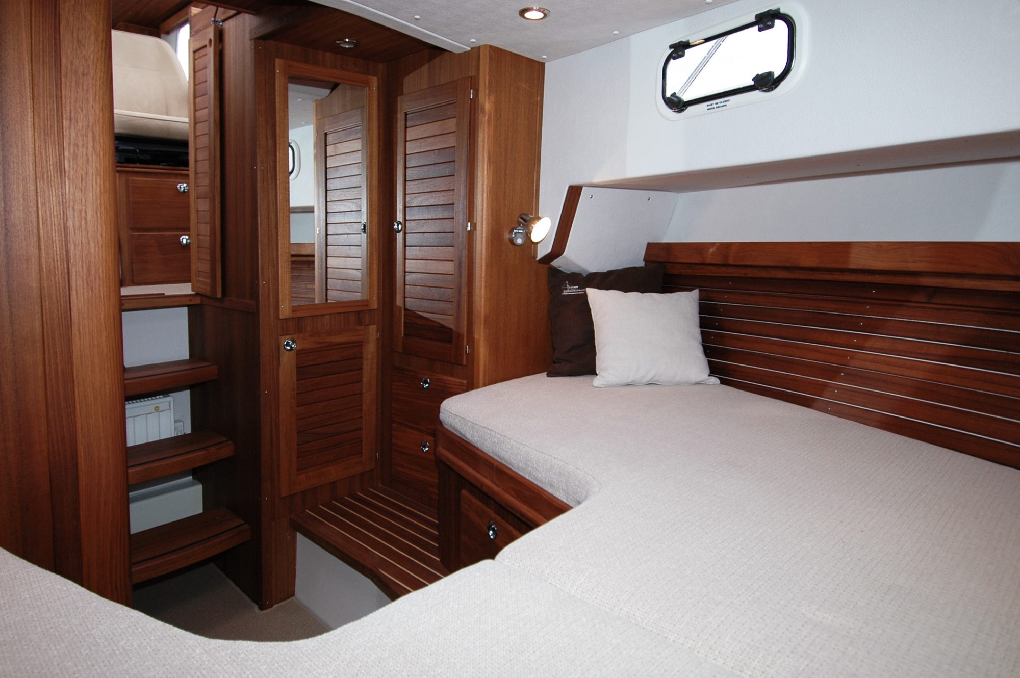 Wie bei allen Targas ist die Targa 35 sicher alleine zu führen. Für einfaches Einhand-Manövrieren verfügt sie über ein sicheres und tiefes Vorderdeck, hohe Bordwände, gut positionierte Haltegriffe sowie absolute Bewegungsfreiheit an Deck und um das Pilothouse. Die Targa 35 ist optimal den Eignerwünschen anzupassen und bietet viele Alternativen zur Auswahl, darunter normale- oder Hi-Fly Bridge, gerader oder negativer Heckspiegel, Hecktür und verschiedene Layout-Alternativen für die Vorderkabine.